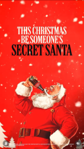 Coca Cola India collaborated with Zepto on Christmas 2025. They ran a Secret Santa Campaign. Instagram post captioned ‘Go to Zepto, search “Secret Santa” and find gifts that unwrap the #RealMagic of Christmas.’