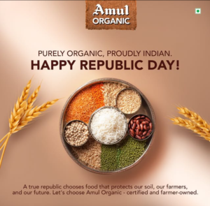 Legendary brand Amul chose to promote their Organic brand ‘Amul Organic’ in an elegant way on Republic Day 2026. Amul’s Instagram post commemorated Farmers in a proud way. It captioned ‘A true republic chooses food that protects our soil, our farmers, and our future. Let’s choose Amul Organic – certified and farmer-owned.’