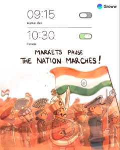 Groww celebrated Republic Day 2026 by masterfully linking the concept of national sovereignty with the pursuit of financial independence. Their post utilizes a clean, minimalist aesthetic to deliver the powerful narrative that while the stock markets are closed for the holiday, the journey toward personal prosperity never pauses.
